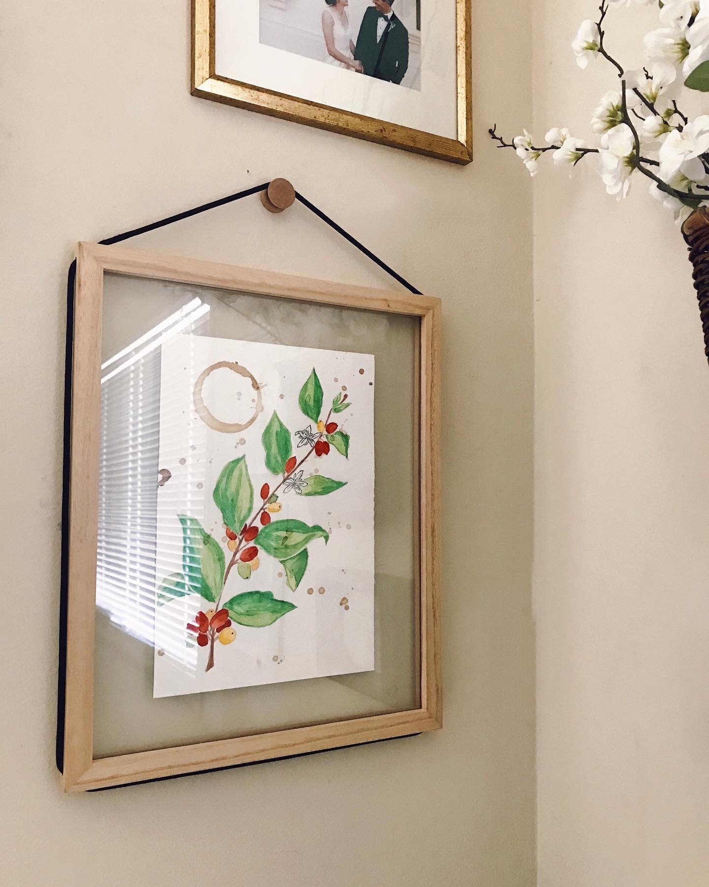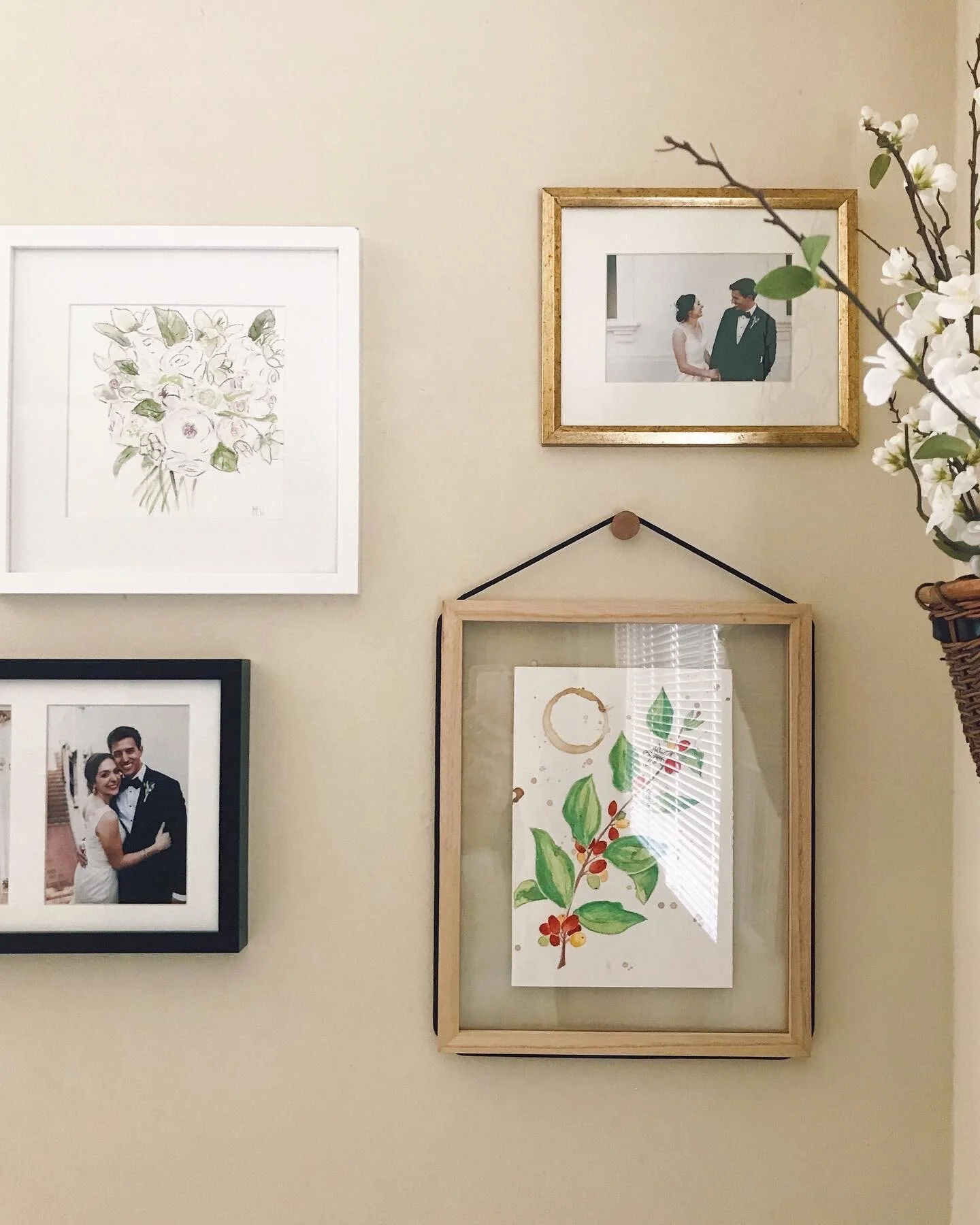 Top left: watercolor painting by Brie Walter, frame from Target / wedding photos / watercolor painting by brother-in-law, frame from Amazon